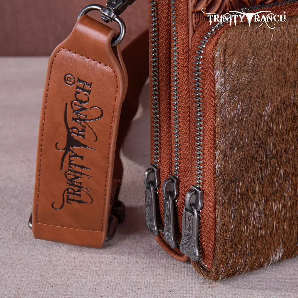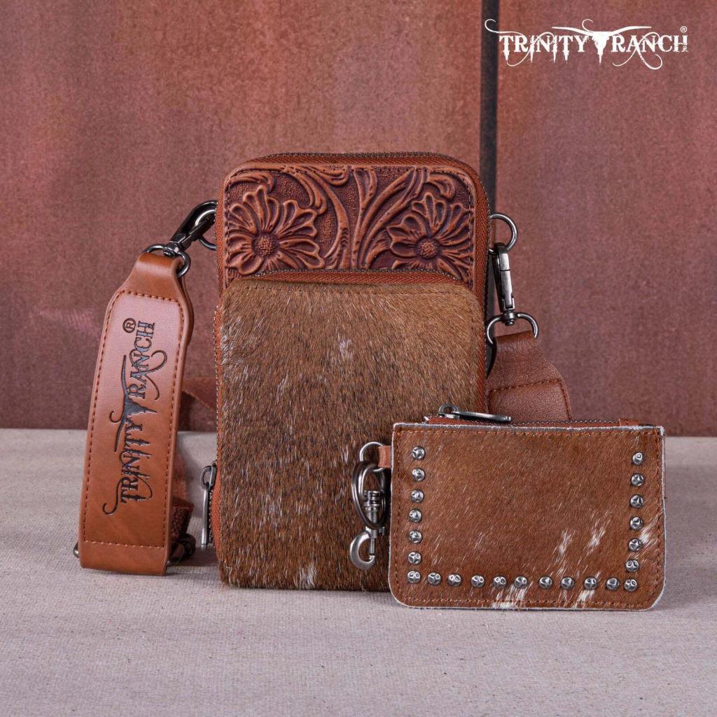 De la línea Trinity Ranch de Montana West, este bolso bandolera para teléfono móvil, parcialmente de piel auténtica, tiene: