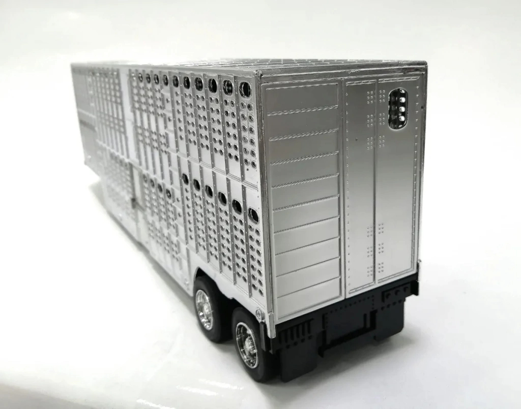 JUGUETE TRAILER GANADERO 1:32 NEW RAY MACK LIVESTOCK CHROME AZUL PLUMBAGO