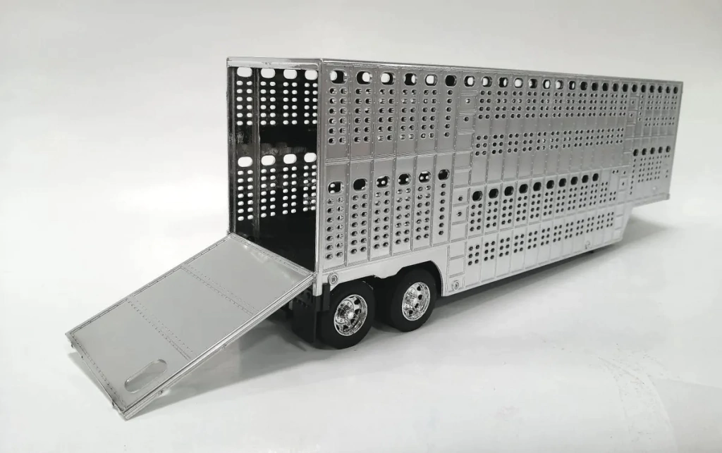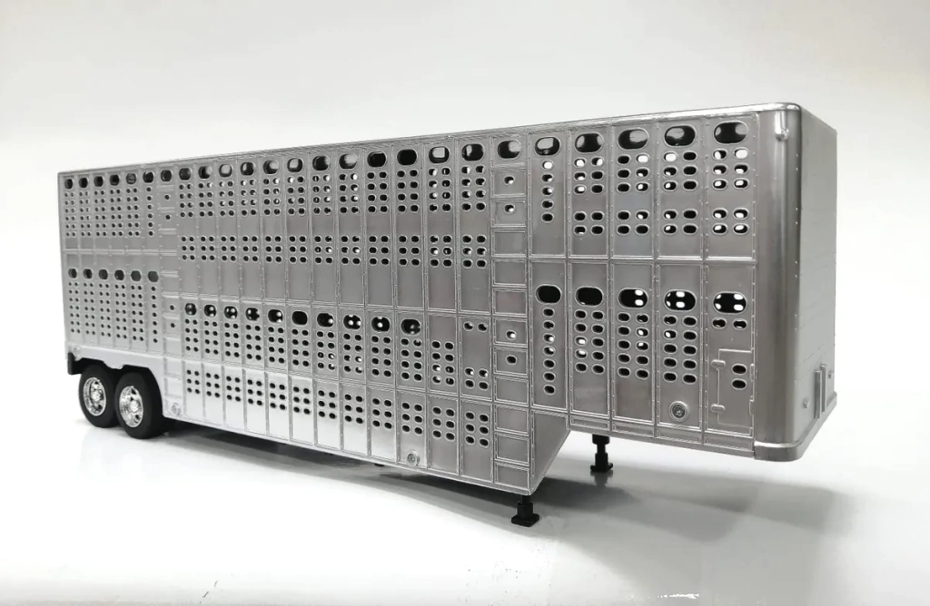 JUGUETE TRAILER GANADERO 1:32 NEW RAY MACK PINNNACLE LIVESTOCK CHROME ROJO