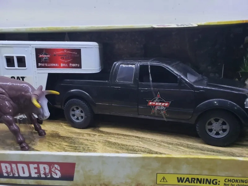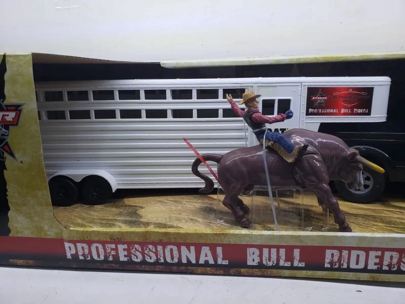 Este set incluye una camioneta y toros fabricados en plástico de alta calidad, con toros funcionales y corrales que se arman fácilmente.