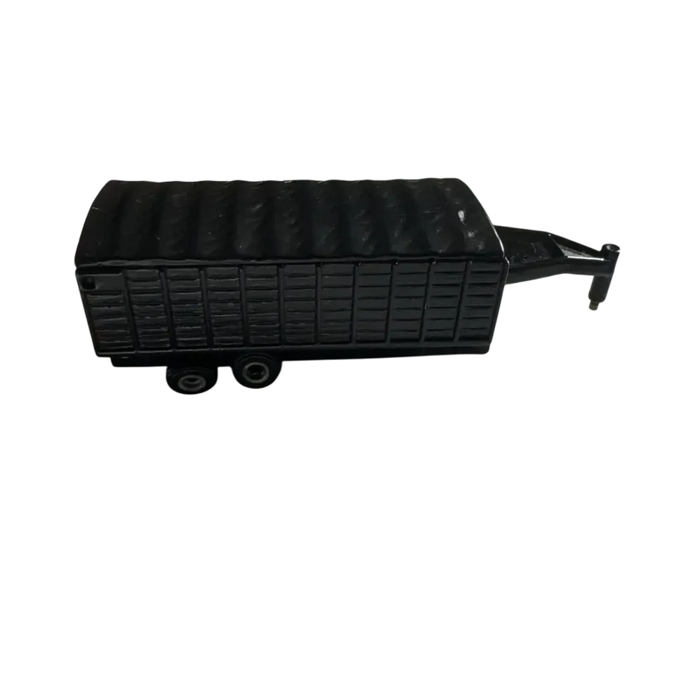 Este remolque para animales, fabricado en metal fundido y plástico, será sin duda una valiosa adición a cualquier colección de juguetes agrícolas. Cuenta con un enganche de quinta rueda que se acopla fácilmente a la mayoría de los vehículos de remolque de tamaño similar. La lona superior desmontable facilita la carga de grano y la parte trasera se levanta para una descarga sencilla. Su robusta construcción en metal fundido lo hace ideal para jugar tanto en interiores como en exteriores, y sus ruedas giratorias permiten empujarlo sin parar. ¡Diversión en la granja para niños a partir de tres años!