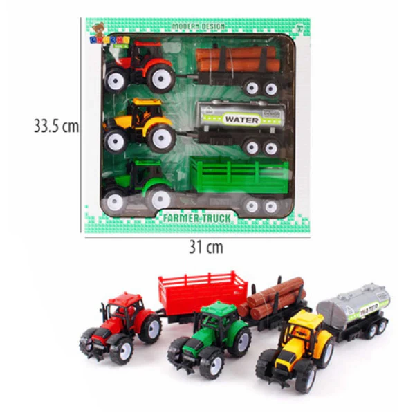 Descubre el poder de la imaginación con nuestro juguete set de 3 tractores de fricción con diferentes cajas. Cada uno de estos tractores de 30 cm de largo te llevará a mundos llenos de aventuras y diversión. Con su mecanismo de fricción, podrás hacer que tus juguetes se muevan y jueguen contigo por horas. ¡No te pierdas la oportunidad de tener estos exclusivos tractores en tu colección!