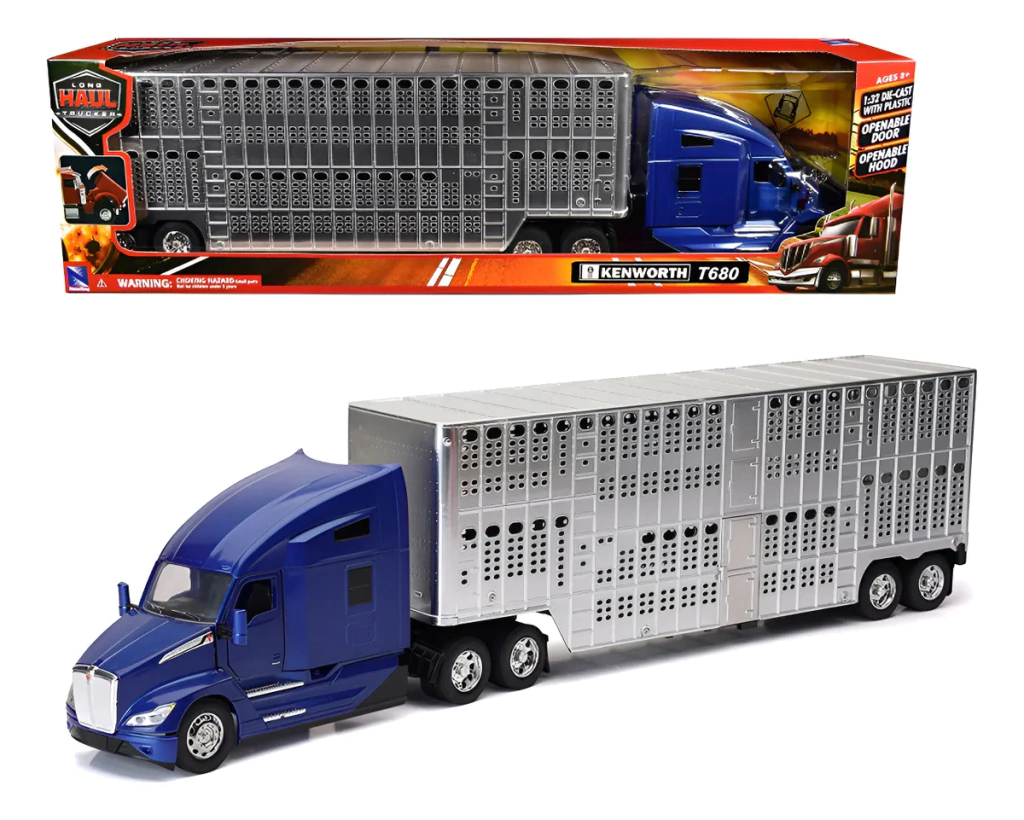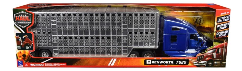JUGUETE TRAILER GANADERO 1:32 NEW RAY KENWORTH W900 POT BELLY LIVESTOCK NEGRO