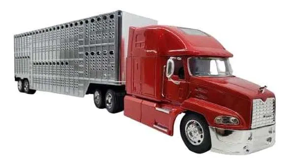 JUGUETE TRAILER GANADERO 1:32 NEW RAY MACK LIVESTOCK CHROME AZUL PLUMBAGO