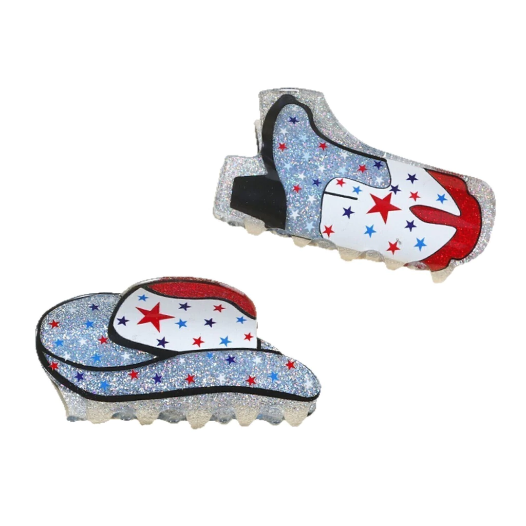 Descubre la Pinza para el Cabello Bota Brillos Azul USA, un accesorio encantador que combina diseño y funcionalidad. Esta pinza de 8 cm está hecha de plástico acrílico y presenta una forma de bota con hojas brillantes y grandes cuentas que realzan su belleza. Perfecta para darle un toque moderno y sofisticado a tu peinado diario. ¡Luce radiante y llena de estilo en cualquier ocasión!