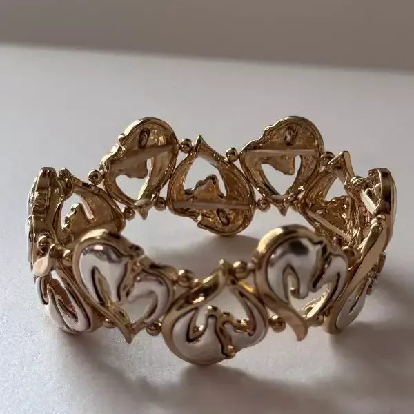 Descubre la elegancia y exclusividad de nuestra Pulsera Dos Caballos en oro y plata. Perfecta para los amantes de los caballos, su diseño único representa la pasión por estos majestuosos animales. Añade un toque sofisticado a tus looks con esta pieza de arte bijou.