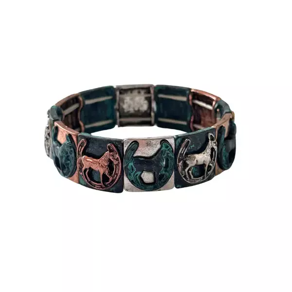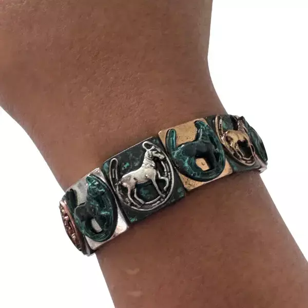 PULSERA KBALLO CUENTAS METALICAS PLATEADAS AMERICANAS CON CABALLO PELO LEOPARDO