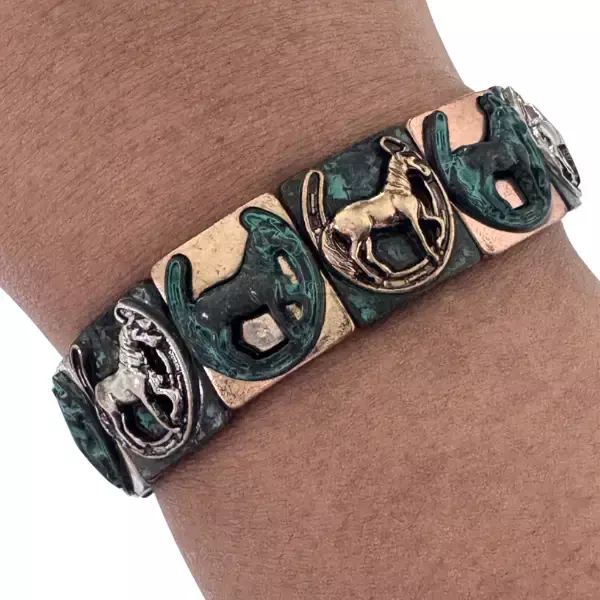 PULSERA KBALLO 2 CABALLOS CORAZON DORADO Y PLATEADO