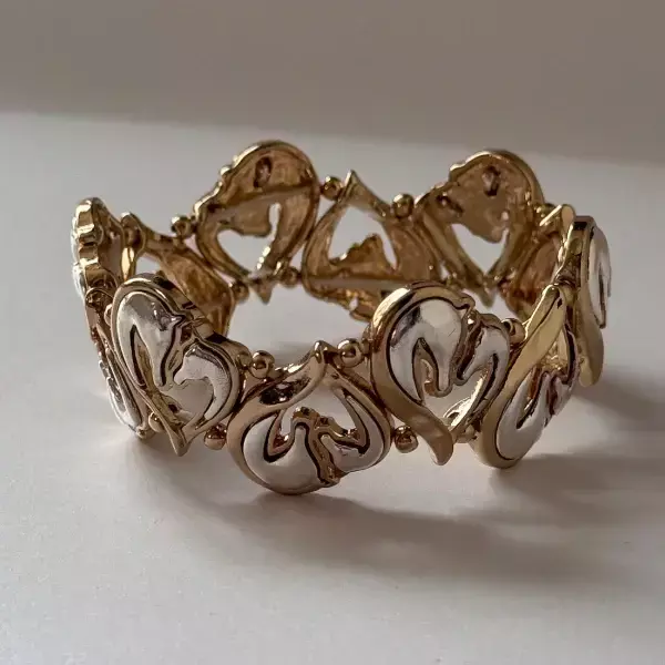 Descubre la elegancia y exclusividad de nuestra Pulsera Dos Caballos en oro y plata. Perfecta para los amantes de los caballos, su diseño único representa la pasión por estos majestuosos animales. Añade un toque sofisticado a tus looks con esta pieza de arte bijou.